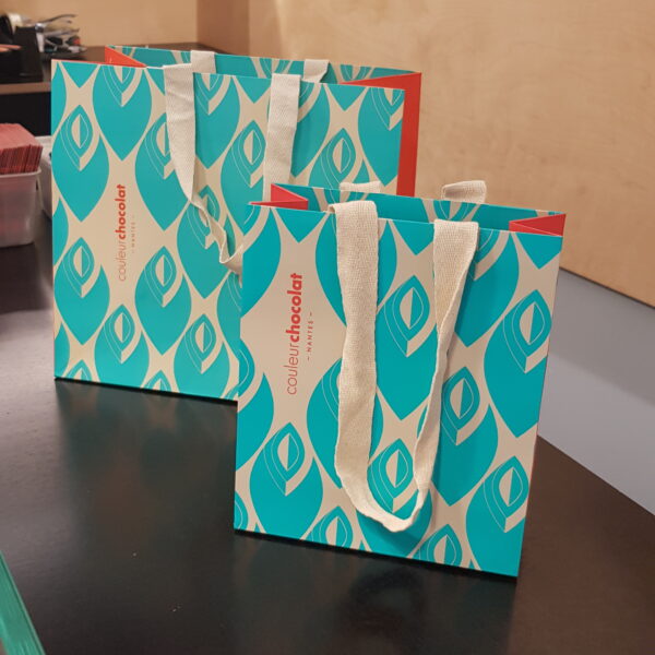 Moustache* et Cravates Roses ont accompagné leurs clients dans l’accomplissement de leur projet : l’ouverture d’une Pâtisserie-Chocolaterie à Nantes. De la recherche du nom, au design de l’identité visuelle, de la création de packaging, en passant par la rénovation et aménagement de leur commerce : architecture d’intérieur et création de la devanture commerciale.